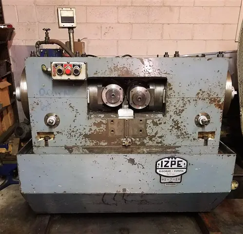 1983 IZPE Model V-2E 2-1/2" Thru-Feed Thread Rolling Machine - Approx. 20 Sets of Dies, 9,10,11, and 13 TPI Dies, 0.315" - 3" Diameter Range, 7.08" Max. Roll Diameter