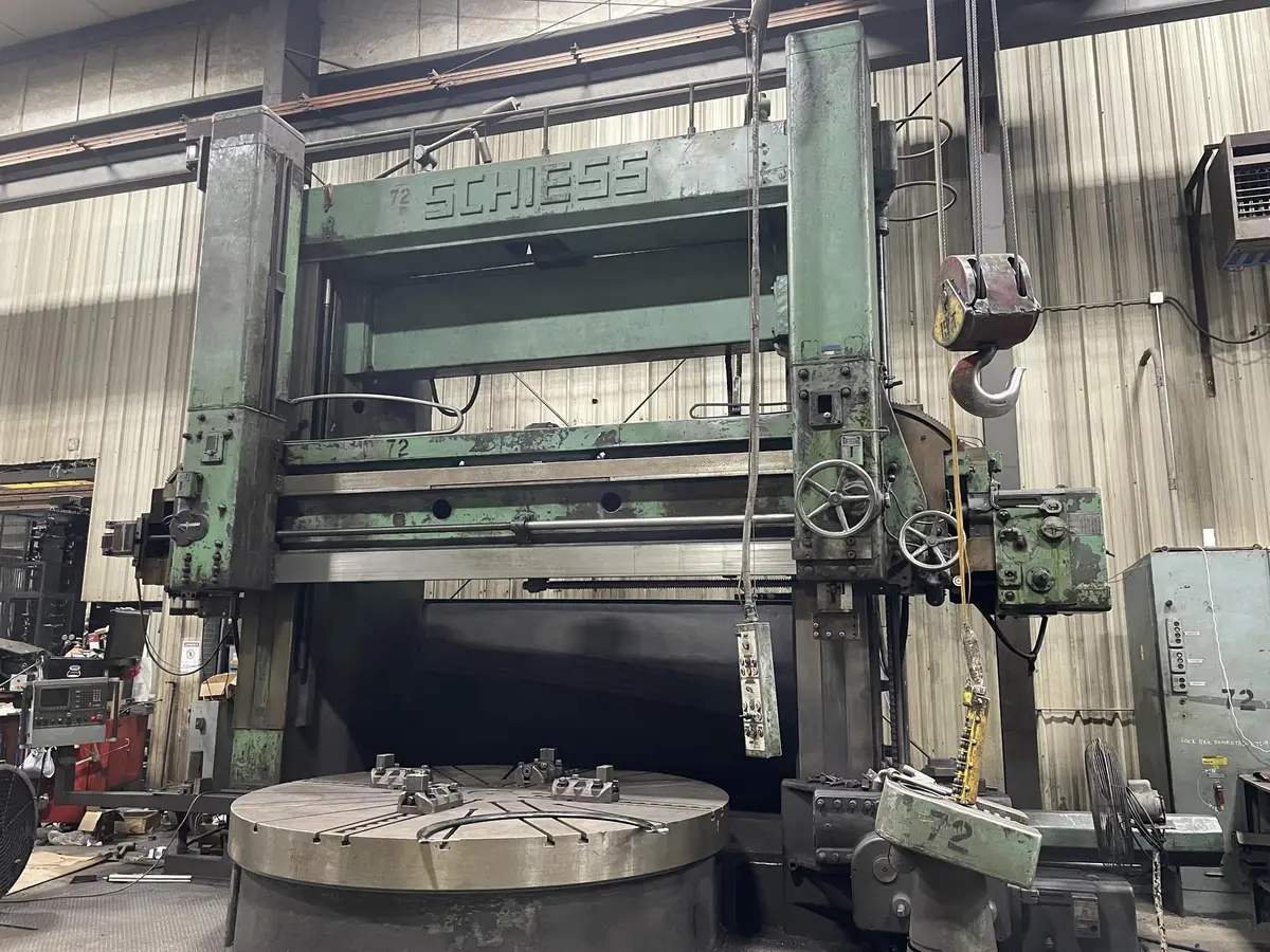 120" Schiess Vertical Boring Mill, 120" Table, 153.5" Swing, 98" Under the Rail, 100 HP, 50 RPM, (2) Ram heads, Left Hand Ram head is CNC