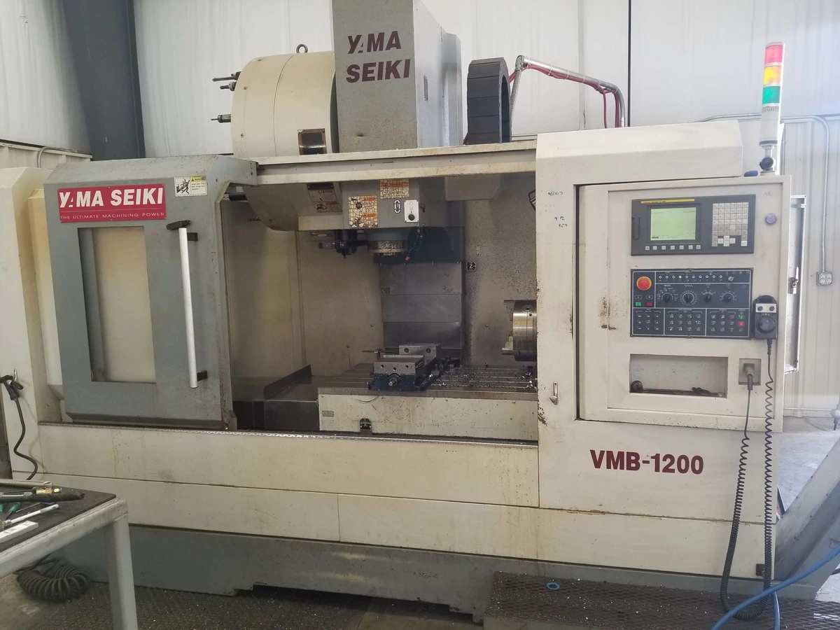 2007 Yama Seiki VMB-1200 Vertical Machining Center with Fanuc Oi-MC Control, 6,000 RPM, CAT-50 Spindle. Machine Includes 12" 4th Axis Rotary Table and Chip Conveyor