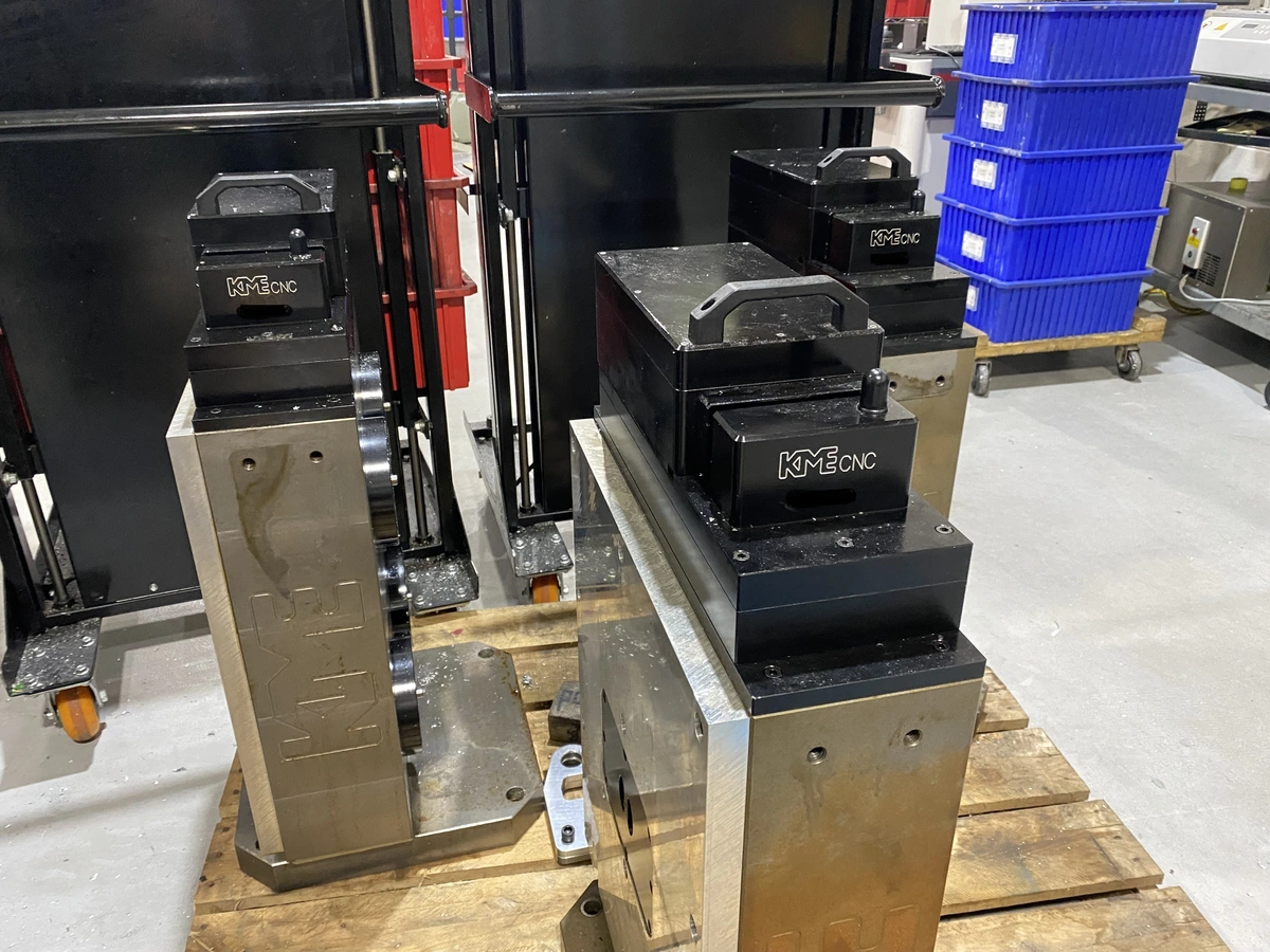 KME-TS400-4-0-RF 5-Axis Wireless Tombstone with (4) Rotary Tables, Controls, and 2 Batteries.