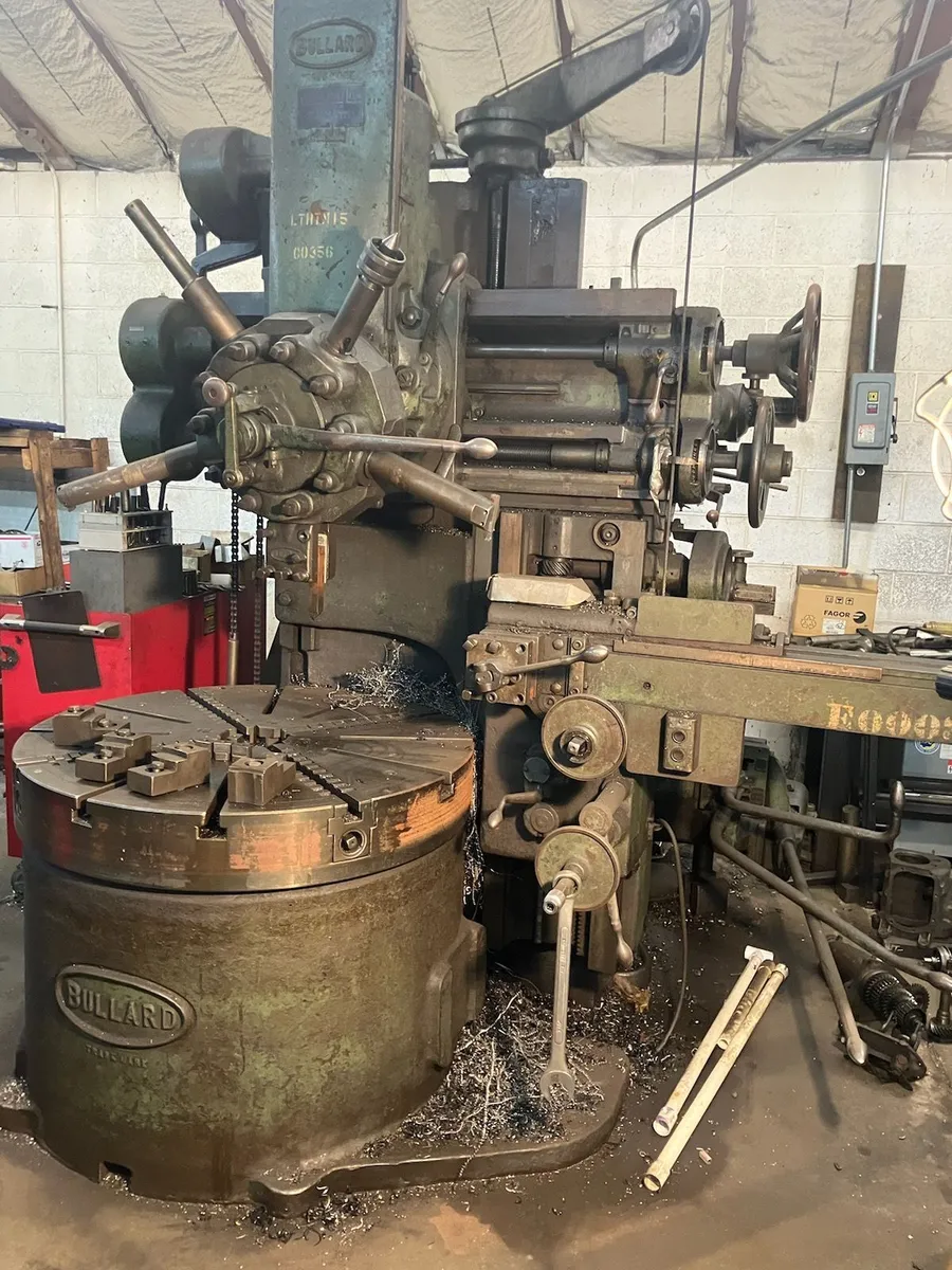 1952 Bullard 42" Spiral Drive with Powerfeed on Turret, Powerfeed on Side Head, 42" Part Clearance, Machine Under Power and Fully Operational.