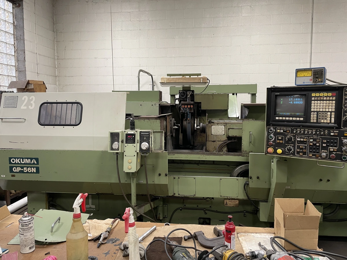 Okuma GP-56N Plain Type Cylindrical Grinder - OSP-5020G Control, Marposs E9 Gauging System, Universal Workhead, Paper Filtration, and Tooling Package Included.