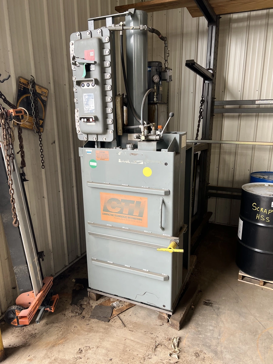 1994 CTI Pakmaster 8540 (In-Drum and Drum Crusher) 40,000 Lbs. Compaction Force, 24" Diameter x 36" Height Capacity.