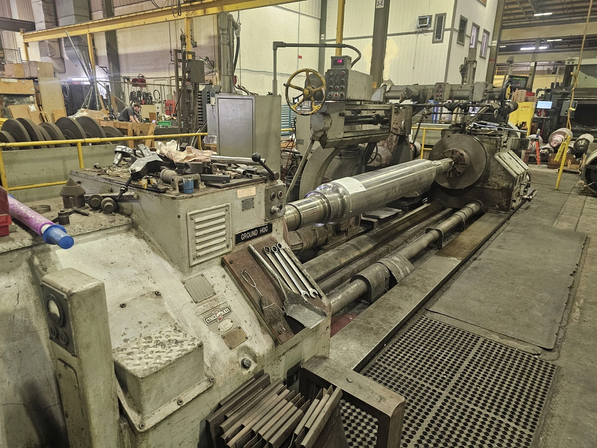 Cincinnati Groundhog 50" x 225" Cylindrical Crankshaft Grinder with 50 HP Variable Speed Motor, Versa Grinding Belt, Lots of Wheels Included