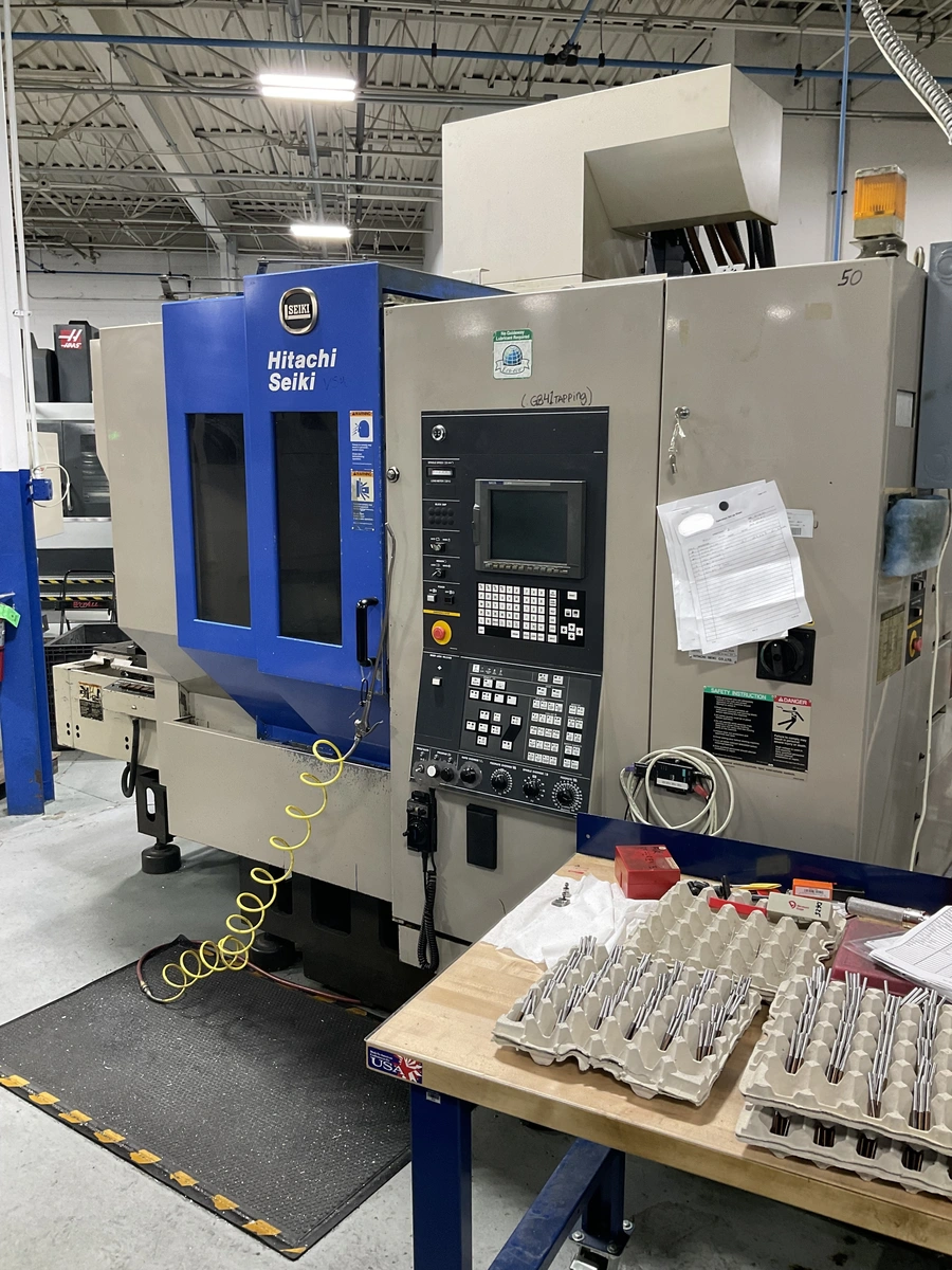 Hitachi Seiki VS40 Vertical Machining Center with 2-Station Pallet Shuttle, Seicos Control, 40 Taper, 12,000 RPM Spindle.