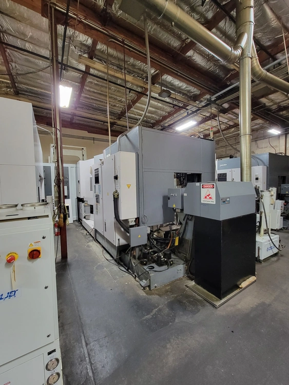 2008 Okuma MA-600HB (3) Machine FMS System with 18 Pallets, 1 Degree 4th Axis, OSP E100L Control, 60 ATC, 12,000 RPM, CAT-50 Spindle, CoolJet High Pressure Coolant, Consep 2000 Conveyor.