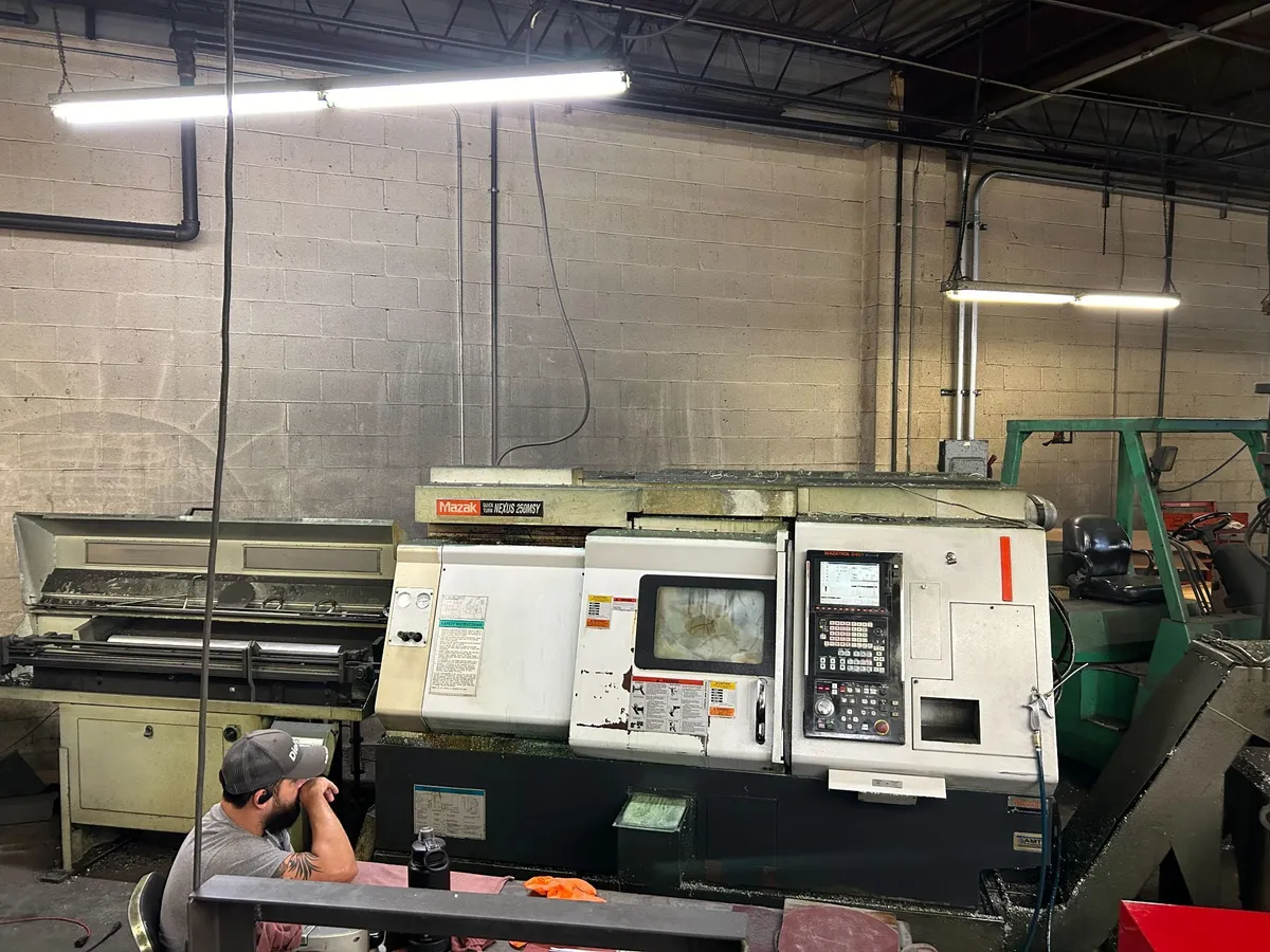 2006 MAZAK QTN-250MSY CNC Turning Center with Sub-Spindle, Live Tooling, and Y-Axis. Nexus 640T Control, Tool Presetter, Parts Catcher, Barfeed, Conveyor.