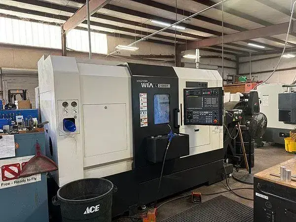 2018 Hyundai Wia L2100SYwith Fanuc 32i-B Control, 8" & 6" 3-Jaw Chucks, Tool Setter, Parts Catcher, 6 Live Holders, and approx. 3,000 Cutting Hours.