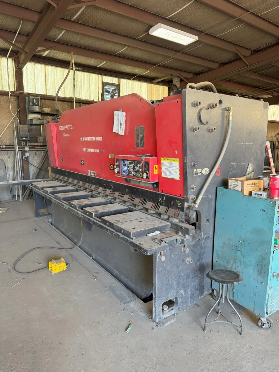 2002 Amada ESH-4013 Hydraulic Shear - 1/2" x 159", 40 HP Motor, Squaring Arm, and Electric Foot Pedal.