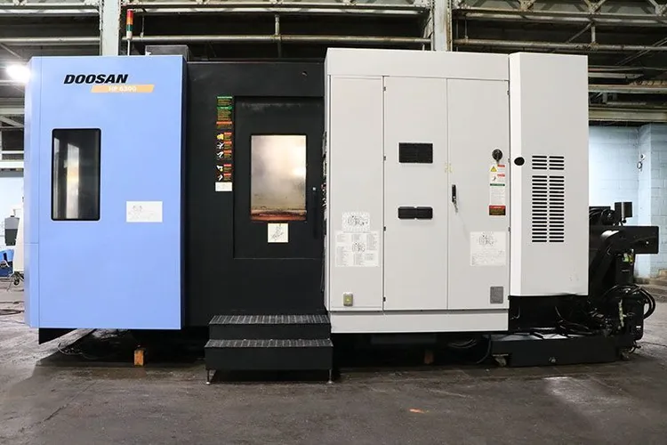 2008 Doosan HP-6300 Horizontal Machining Center with Fanuc 18iMB Control, Full 4th Axis, 60 Station ATC, Renishaw Part Probe & Tool Setter, and LNS Chip Conveyor.