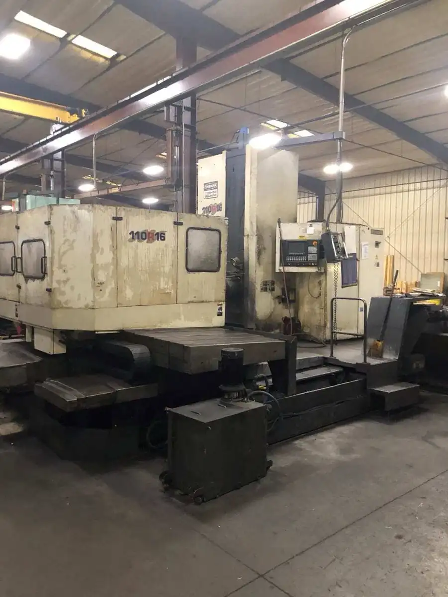 1996 Toshiba BTD-110R16 Horizontal Boring Mill with Tosnuc 888 CNC Control, Full B-Axis Rotary Table, 38 ATC, Marposs Probe, and Chip Conveyor.