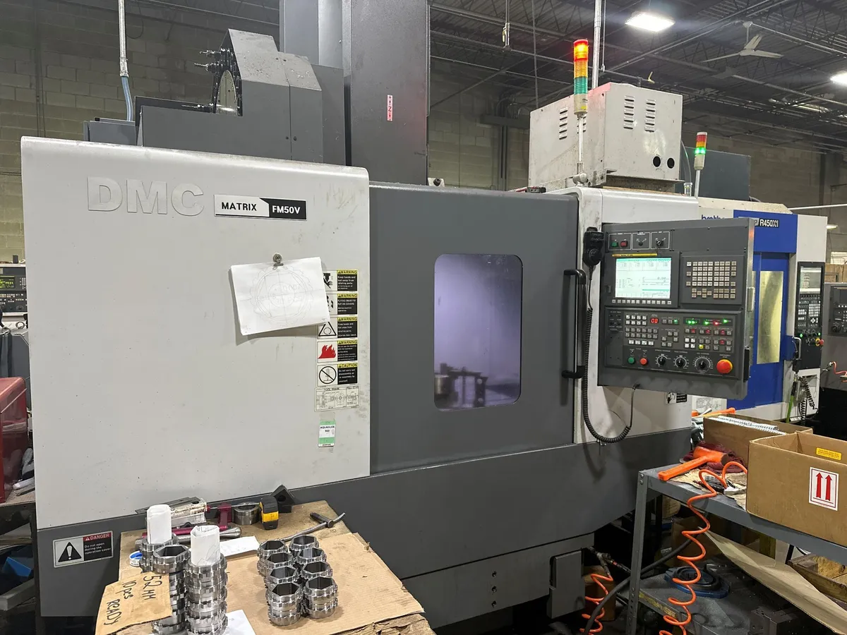 2012 DMC Matrix FM50V Vertical Machining Center with Fanuc Control, 15,000 RPM, CAT-40 Spindle, 30 ATC, Portable MPG, and Chip Conveyor.